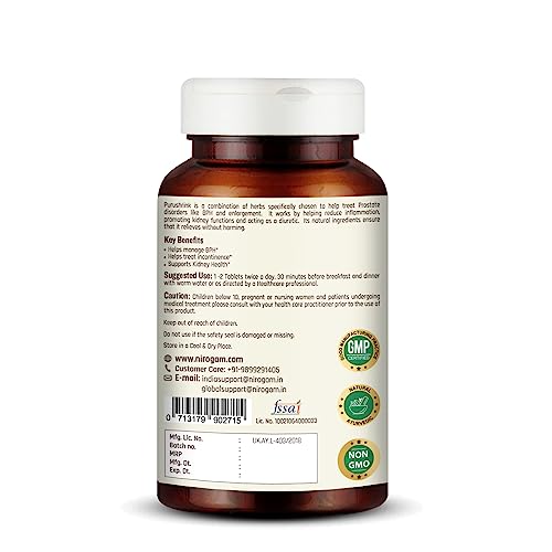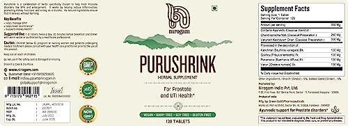 Nirogam Purushrink Prostate Health Supplement for Men | Support Better Sleep and Urinary Health | Natural Ayurvedic Formula 120 Tablets