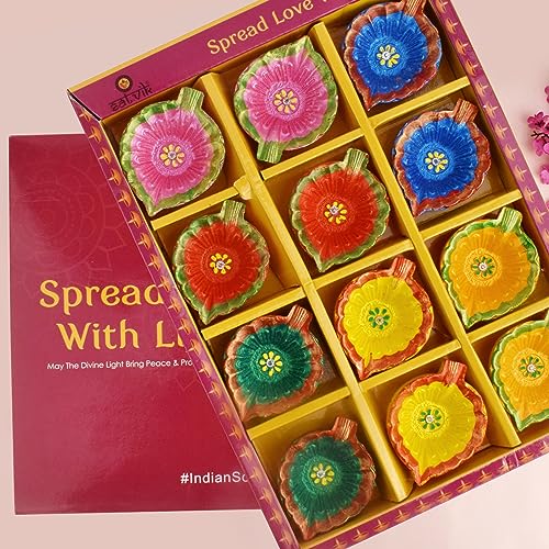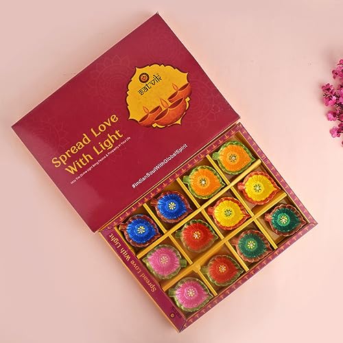 Package Contains: Set of 12 Pc Multicolor Designer Clay Diya. The Set comes in Premium Gift Packing., So no need to Re-Pack.