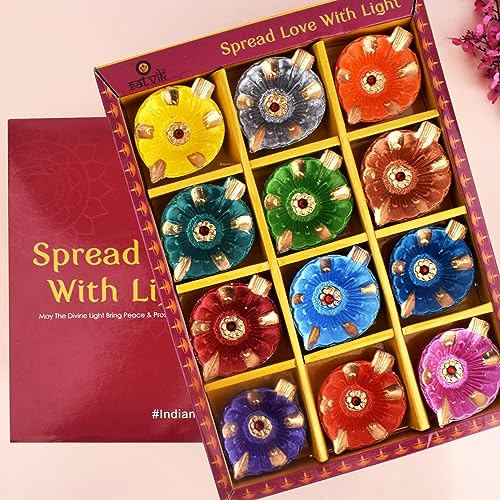 Be the first to review “SATVIK 12 Pc Multicolor Clay Diya Terracotta Dia Traditional Puja Vilakku Oil Lamp Natural Mitti Diya Tea Light Welcome Diwali Deepawali Navratri Pooja Décorations Indian Housewarming Return Gift Item”