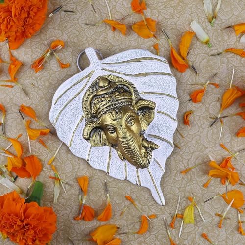 SATVIK Metal Pan Patta Ganesh Decorative Wall Hanging Showpiece Lord Ganesha on Leaf Home Decor. Indian Housewarming Return gift for bulk. Figurine pooja decoration item